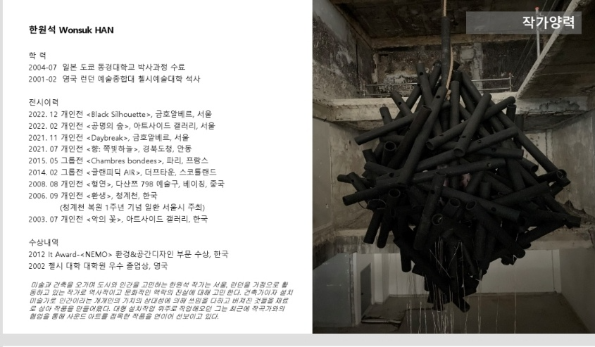 지난 2023. 12.12(화) ~ 1.14(일)에 금호알베르에서 한원석 작가의 '불이화(不二火) 한원석X시율'전을 통해 새로운 작품을 선보였습니다. 이 작품은 서울 성동구 금호알베르에서 개최되어 한원석 작가의 작품 세계와 예술적 스타일을 탐구하는데 큰 기회가 되었습니다.