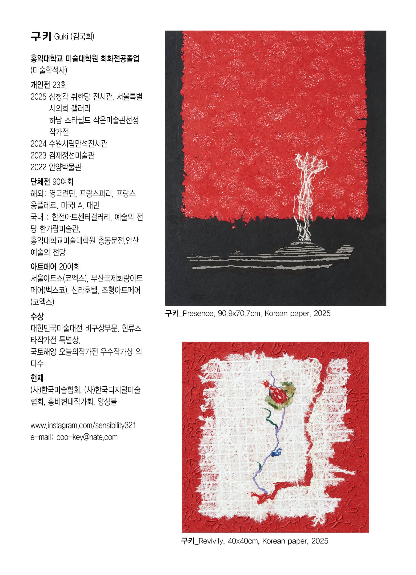 국내외 다수의 전시에서 활발히 활동하고 있으며, 다양한 미술대전에서 수상 경력을 보유한 구키 작가는 전통의 아름다움과 현대 미술의 조화를 동시에 경험하게 해줍니다.