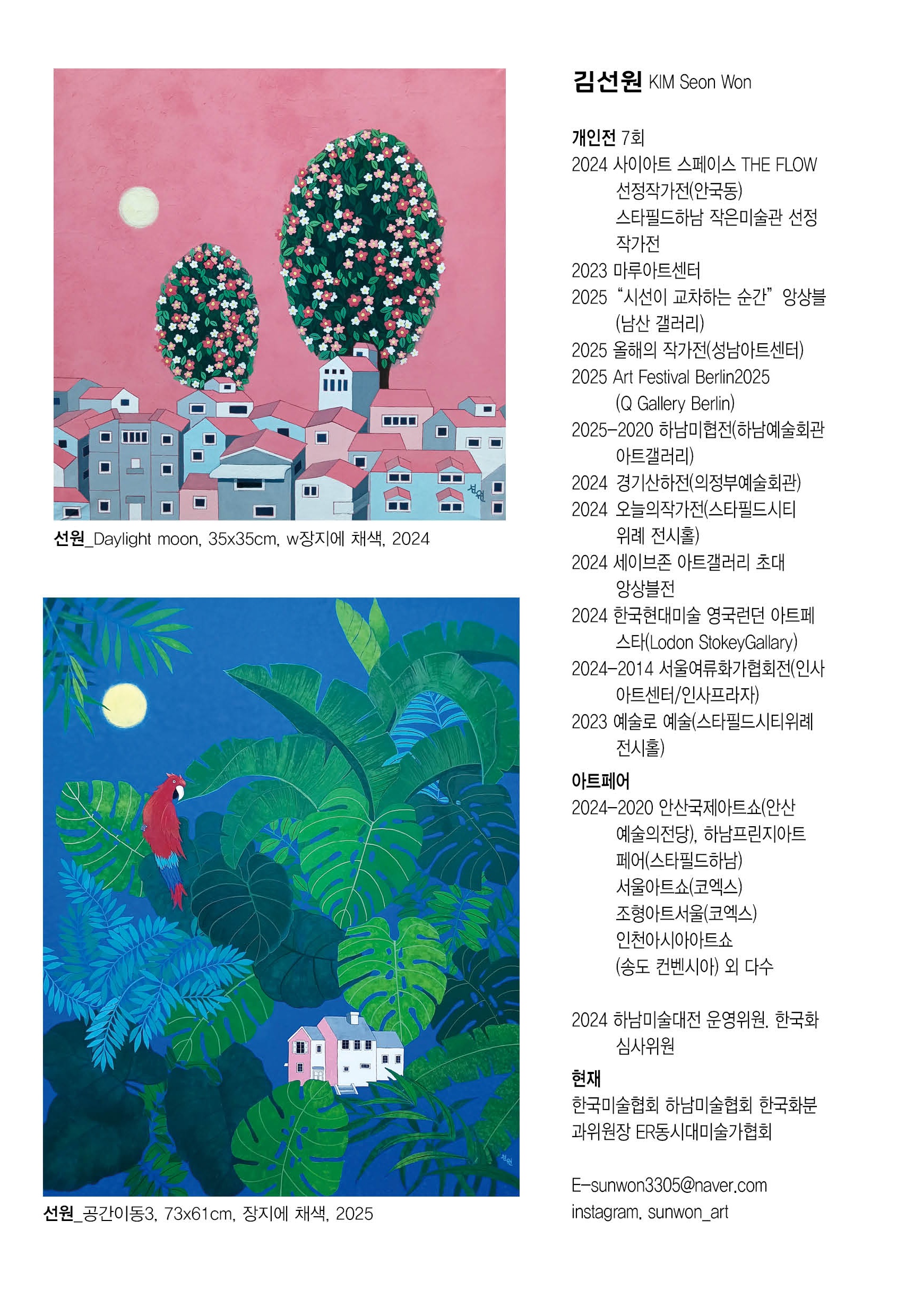 아트페어와 해외 전시에서도 꾸준히 작품을 선보이며 국내외에서 사랑받고 있는 선원 작가는 이번 전시에서 따뜻하고 부드러운 색의 세계를 보여줍니다.