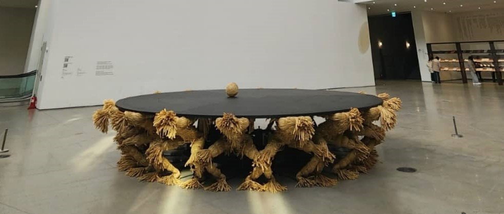 그런데 작가 설명을 들어보니 둥근 물체는 공이 아니라 사람의 머리이고 18개의 지푸가기 몸체들이 서로 머리를 차지하기 위해 몸을 일으키면 머리는 더 멀리 밀어내 버리는 역설적인 상황을 가진 작품이라고 해요.