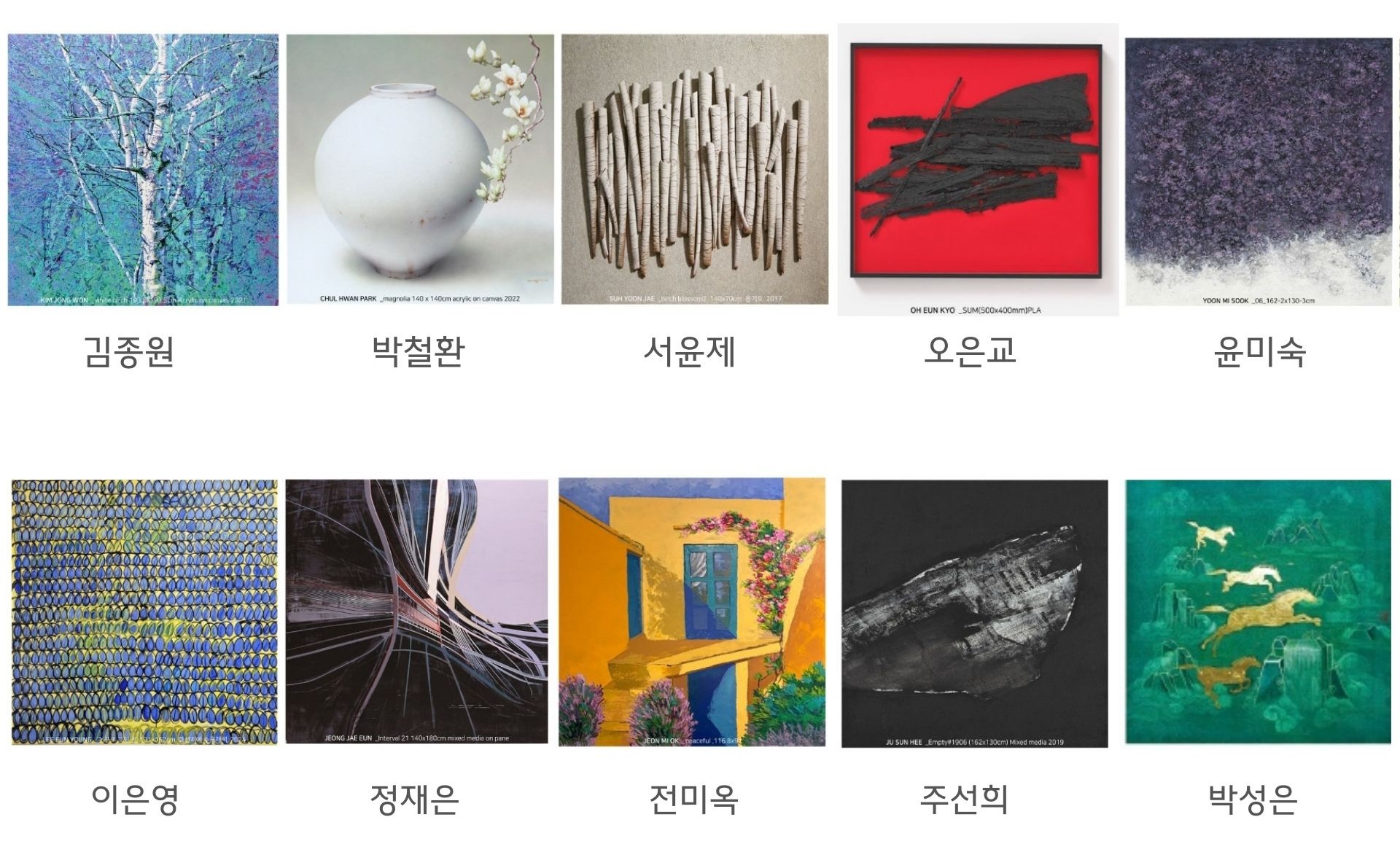 - 🧑🎨 참여 작가: 김종원, 박철환, 박성은, 서윤제, 오은교, 윤미숙, 이은영, 정재은, 전미옥, 주선희